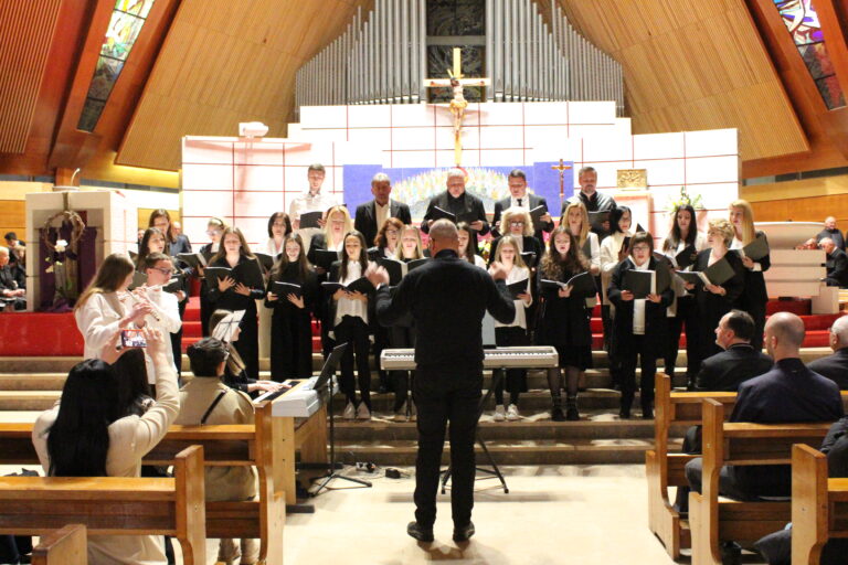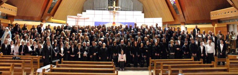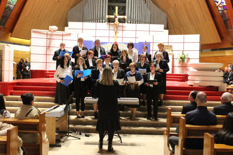 Nakon misnoga slavlja upriličen je susret velikih župnih zborova s područja Mostarsko-duvanjske i Trebinjsko-mrkanske biskupije. Svi su pristigli župni zborovi pjevali zajedno za vrijeme svete Mise, raspoređeni po glasovima, lijevo od oltara ženski glasovi a desno muški. Zajedno su dirigirali maestro don Dragan Filipović i gosp. Drago Soldo, voditelj zborova župe Sv. Petra i Pavla u Mostaru. Na orguljama svirala je s. Matea Krešić.