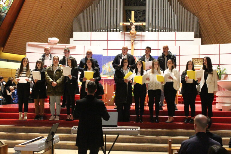 Nakon svete Mise i završne zajedničke pjesme sve okupljene pozdravio je don Nikola, generalni vikar, te najavio koncert i zborove koji su slijedom nastupali a to su zborovi iz župa: Svetoga Tome u Mostaru, Studenci, Svetoga Mateja u Mostaru, Potoci-Bijelo Polje, Ravno i Trebinja, Prenj, Sv. Petra i Pavla u Mostaru, Sv. Ivana u Mostaru, Gradina, Rotimlja, Sv. Marka i Luke u Mostaru i na kraju domaćini, katedralni zbor Marija. Svi zborovi pjevali su po jednu duhovnu skladbu, uglavnom korizmenu ili na čast sv. Josipu. Biskup Palić, obrativši se na kraju koncerta pjevačima i slušateljima, izrazio je radost na ovome susretu na slavu Bogu i na čast sv. Josipu ali i nadu da će ovo okupljanje postati tradicija te da će se svake godine okupiti još više pjevača i pjevačica slaveći i moleći Boga pjesmom.